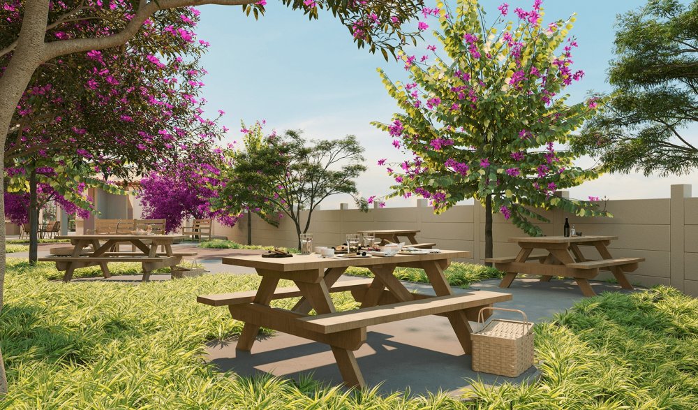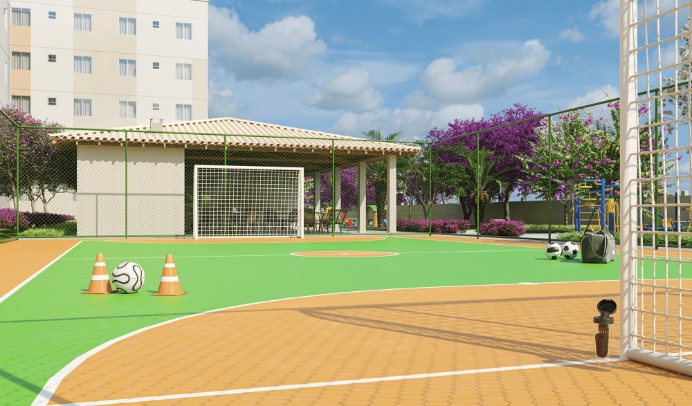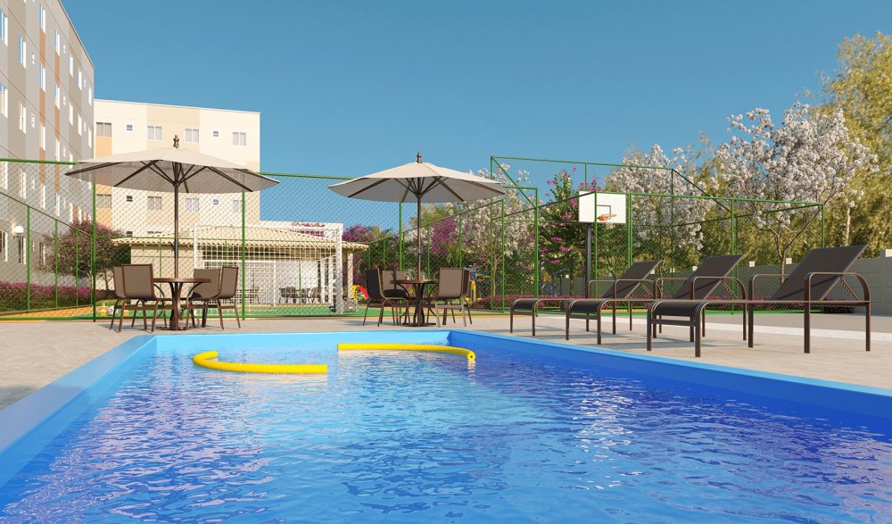 O imóvel dispõe de dois dormitórios, um banheiro, uma sala, proporcionando um espaço ideal para acomodar sua família. Além disso, o apartamento conta com uma série de comodidades que garantem lazer e segurança para você e sua família, como bicicletário, churrasqueira, espaço gourmet, garagem, piscina, playground, portaria 24 horas e quadra poliesportiva.