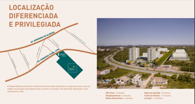 Condomínio Smart Connection, localizado na Avenida Ferreira Viana, número 3784, no bairro Centro, em Pelotas. Este empreendimento oferece apartamentos prontos para morar, com área total de 61,79 m², a partir de R$ 456.000,00. Cada unidade possui 2 dormitórios, sendo 1 suíte, 2 banheiros, 1 sala e 1 vaga de garagem.